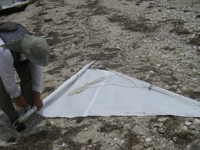 No mast and no sail meant no go for Mike, we the 'Duckers put their heads and spare parts together. Kevin donated a spare lug sail and reefed it down to about 16sqft.