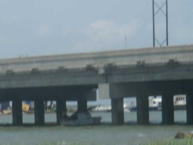 Gordo pushed off and used his oars to go under the bridge. Then the wind caught him and pushed him out to sea a little.