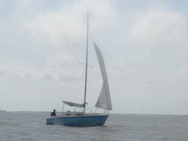 Bobby and Kristina, sailing under jib and 3.5hp outboard, soon outpaced us and took off to windward. We were passed by the other boats of the Texas 200 and we fought our way across the bay to the pass at the end of Panther Reef.