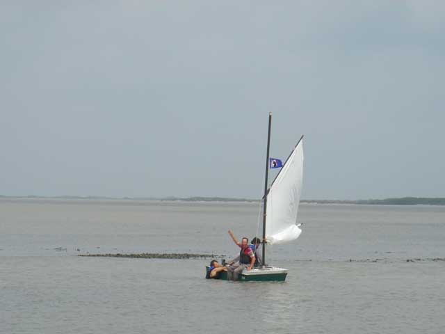 but she went over again. Finally, we saw him wave down a fisherman and