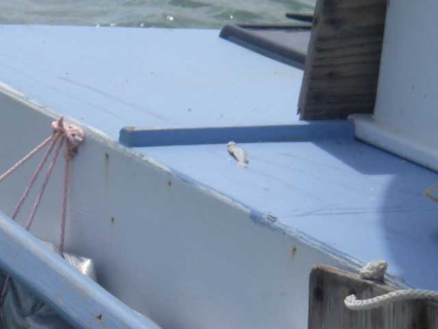 Every good sea story has a capsizing, a storm, dolphins, and flying fish landing in your cockpit overnight. Gordo experienced this last (sort of) when he work up and found this tiny little guy expired on his coaming.