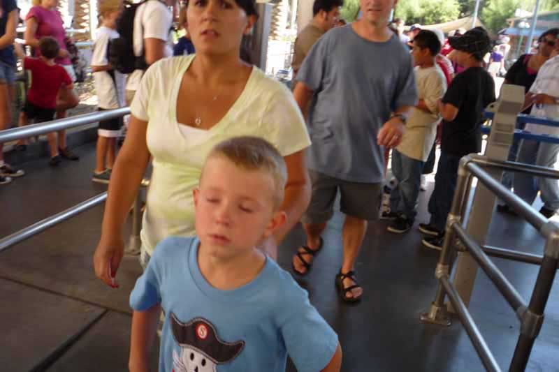 Our last ride was Soaring over California. While we were waiting, this kid was bawling his head off. Finally, I got up and snapped this shot. The mom said "What are you doing?" I said "I just wanted a shot of a kid in the happiest place on earth."