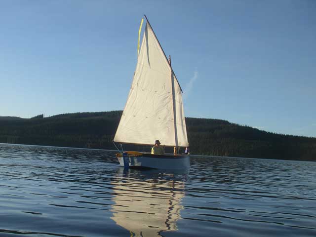 Timothy Lake is a popular small boat lake (max speed 10mph) on Mount Hood. It gets good wind in the afternoons, and a few years ago, someone decided to start having messabouts there in late September, after most of the campgrounds close. I arrived on Friday afternoon. Out on the water was legendary Australian boat designer, Michael Storer in one of his designs, the Goat Island Skiff. MIK is big in the PDR world and was here visiting the US at the request of the American Puddle Duckers. |