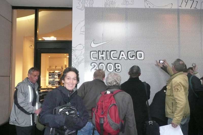 Nike sponsored the Chicago Marathonthis year, so we stopped by Niketown. One thing they did was have everyone's name printed on that sign you see in the background.