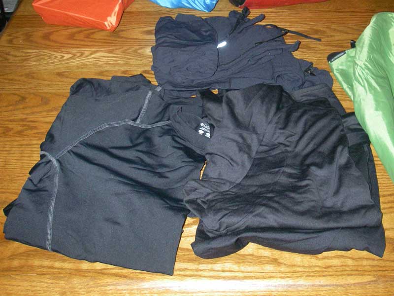 I spent nearly $300 on cold weather undies. All these items are quick dry, wicking, synthetic materials made for running in Oregon. 2 pair of leggings, 2 pair of long sleeved shirts, and 2 pair short sleeved shirts.