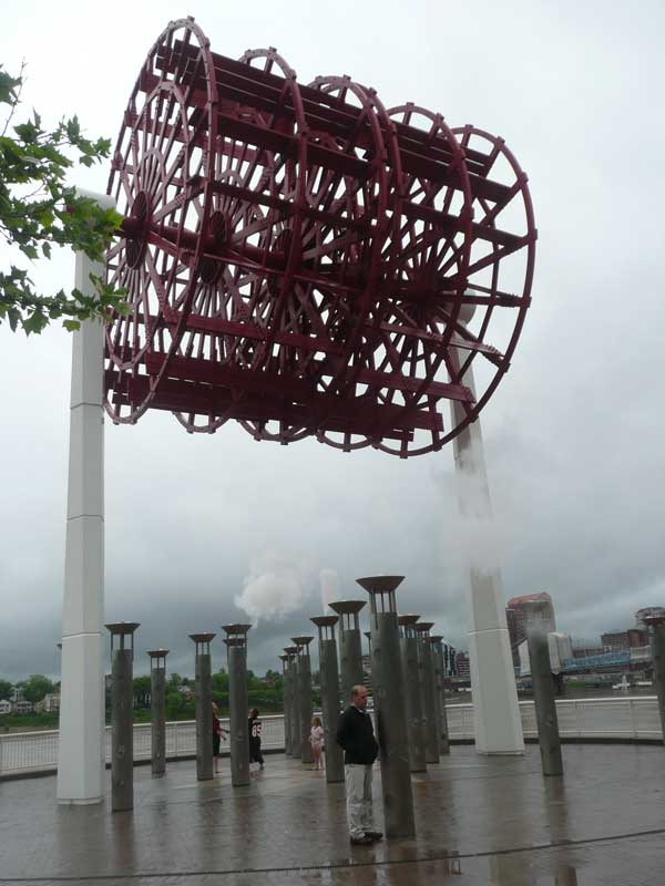 And me walking around the steamboat memorial. This is a pretty neat, interactive piece of art - as you approach the pipes, they let off a burst of steam and tell part of a story.