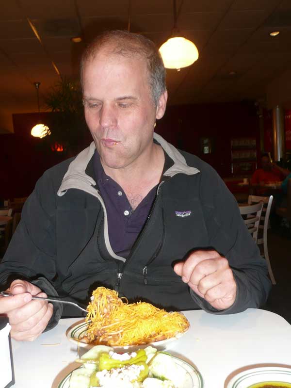 everyone says they have excellent Cincinnati-style chili. Yeah, it was . . . good. They serve it over spaghetti noodles and with lots of cheddar cheese. It's different from the cans of Nalley's back home. Let's just say we were glad we tried it. |