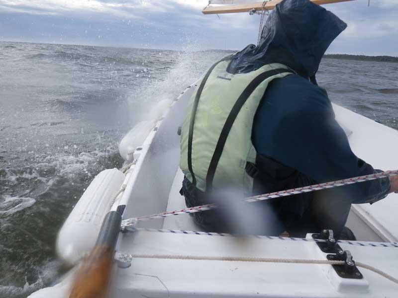 Protected or not, it was still a wet ride. The gunnel design of the Laguna prevents water from shipping over the bow, but it is an open boat, so spray does get blown into the cockpit.