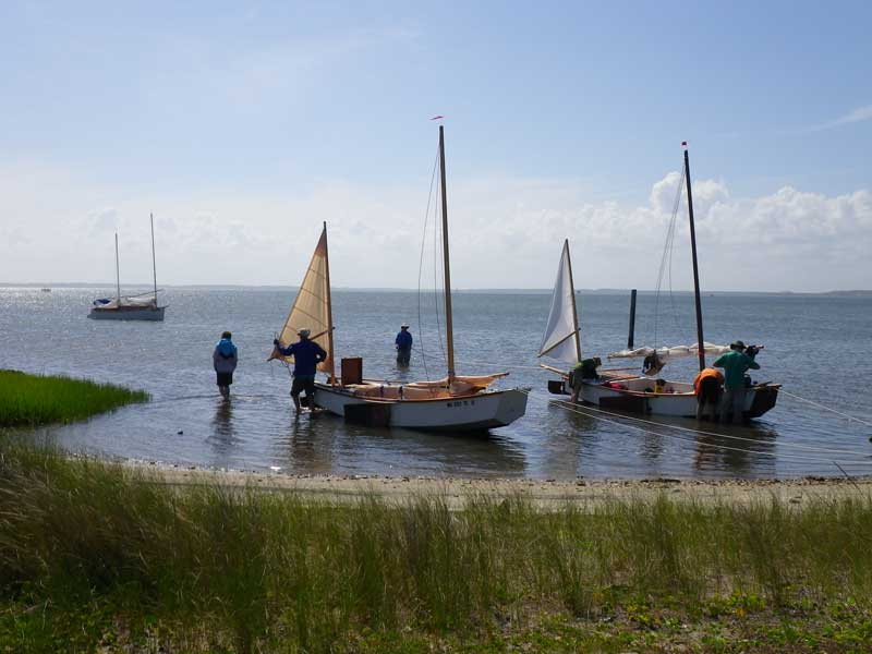 There was sanctuary at the site of a condemned gun club on one of the barrier islands. Our boats gathered there to camp for the evening. This photo is unique in that it shows the only two Mikesboats known to exist, Bill's and David's.