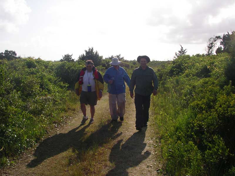 too. Hmmm. Still, Mike, and the ever plucky Canadian, Pete, (as well as Chuck, the photographer) braved the gauntlet to cross the isle and see what we could see. Actually, they were quite pleased I came along, as the deerfly were much more attracted to me than them. |
