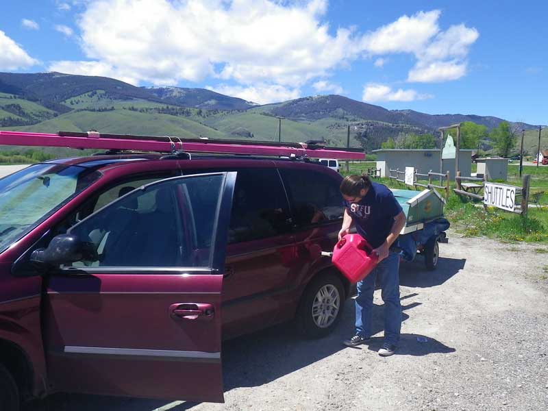 We had a tiny hiccup early in the trip - I was using the GPS to tell me where gas stations were, and it had a suggestion for the RD Kwik Stop (or some such) right at the edge of our driving range. Surprise surprise! No gas station. So we begged some from some yokels ($5/gal) and motored on down the road. |