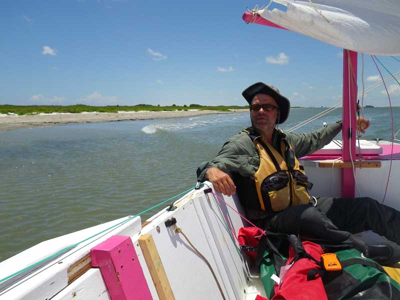We'd sail very close to the edge of the channel, and as the winds picked up in the afternoon, we got moving pretty well. That wake in the background shows that we are sailing over very skinny water.