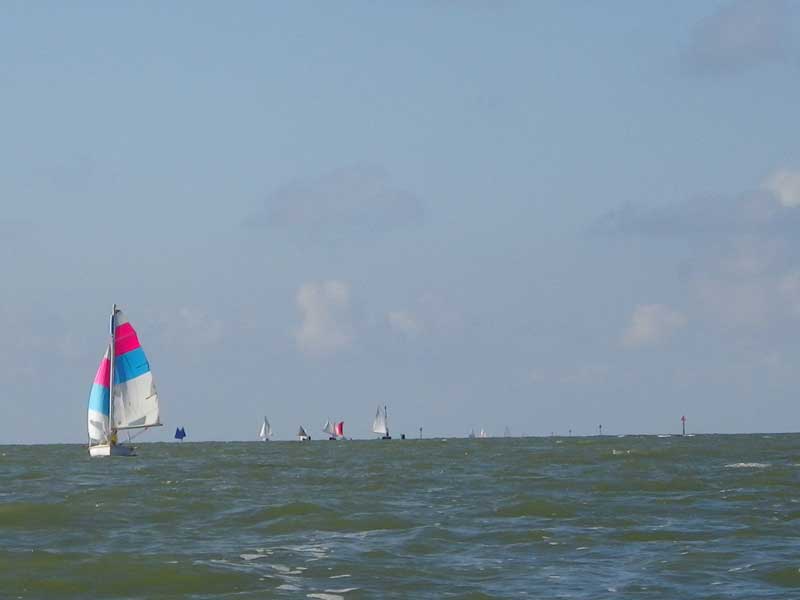 In no time at all, we were skipping along in the forepart of the fleet. That's John Vacha in his 12' fiberglass sailing dinghy,