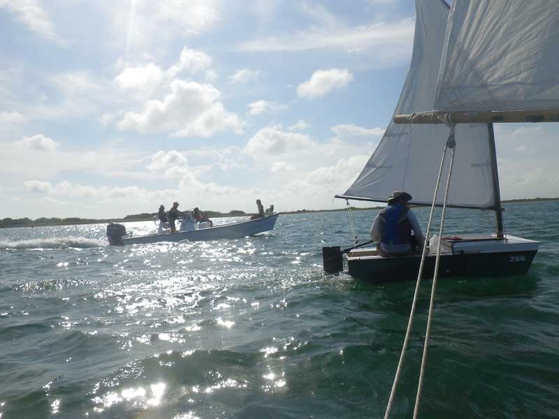 This guy was living the life. He had a boat with four young women in bikinis on it - necessary accessories for any powerboat. He was very interested in our little boats.