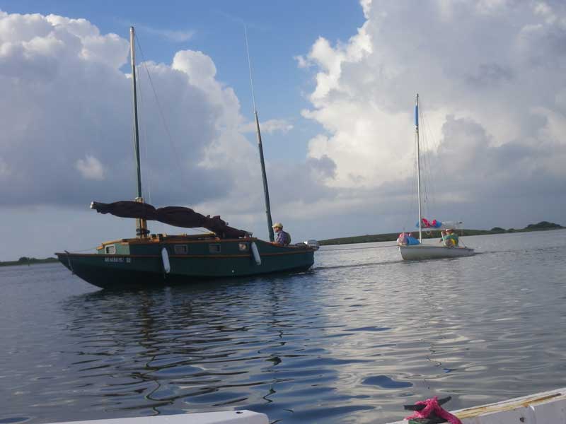 others. Chuck motored past us, towing John Vacha in his 12' sailing dinghy,