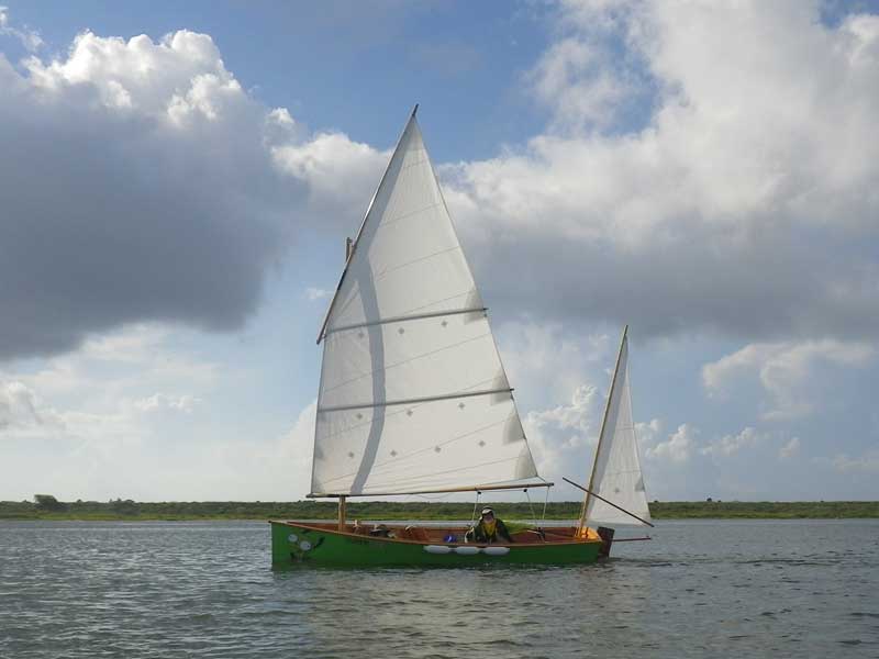 , the Goat Island Skiff, sailed by, using tiny puffs of wind to full advantage.