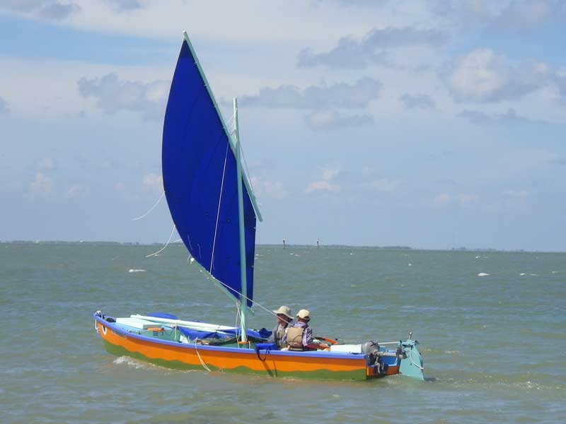 Lagunas have 3 mast steps, the middle one is almost never used. Chuck decided to put it to the test as he moved his boat down to the ramp.