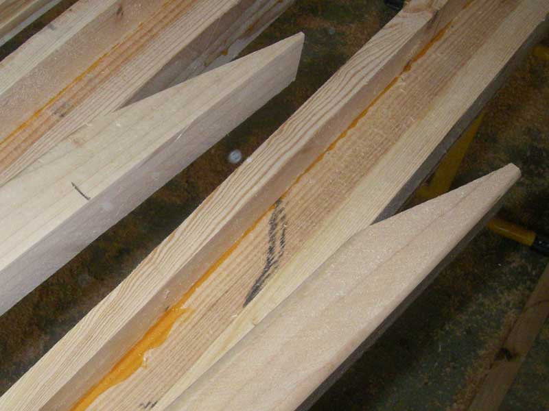 I used another 2x4 to make the reinforcement blocks - first ripping it in half, then cutting it up as needed. I put a long angle in the blocks at the top and bottom blocks to spread the force out as much as possible