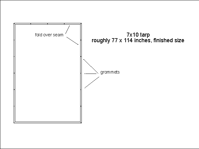 This design actually uses the tarp's factory sides for the luff and the leach and the grommets as attachment points for the boom, battens, and yard.