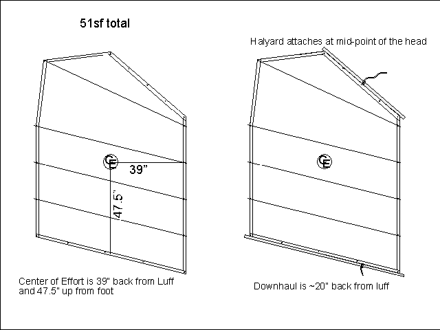 The sail is roughly 51 square feet in area - plenty to drive a PDR (my first PDR used a similar sail and it went like stink on ice.)