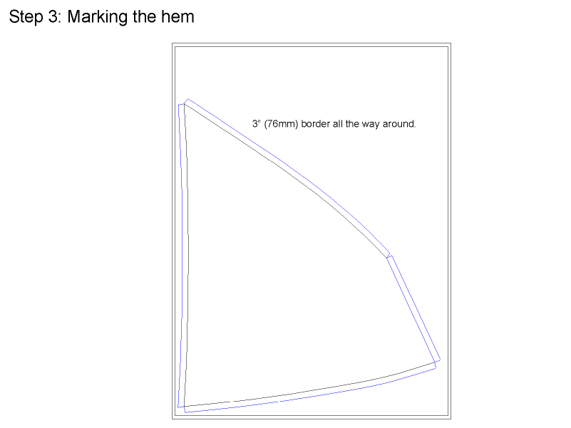 The hem will be folded over twice, then stitched to the sail. I like to have 3" of hem material so the final hem is 1 1/2" wide.
