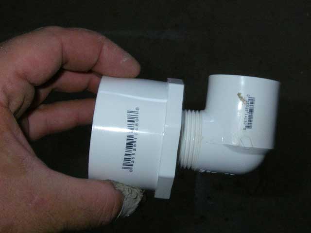 Screw an elbow into the 2" bushing - use the Teflon tape to make sure you have a good seal.
