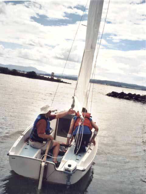 And pushed us off. Notice the position of the sail. Again, straight into the wind.