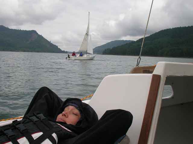 Keely tried to relax as I fired up the outboard and got closer to Greg.