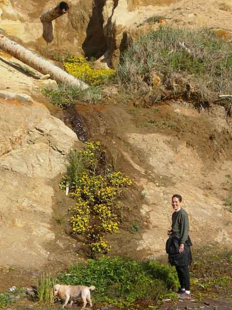 We walk down to a spot we named Burgie Creek, after the dog Keely grew up with. Adolph, the dog in the foreground, has been Jim's dog since Burgie. Jim's dogs last a long time, adn that would be a good thing if they were friendlier dogs. Adolph can be a bit of a pill sometimes. |
