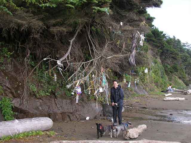 We like to hang bits of floatsom from that tree - it was a tradition Jim started, and it went from Jim doing it, to Keely and I doing it, and now people we have never met do it. Cool, innut?