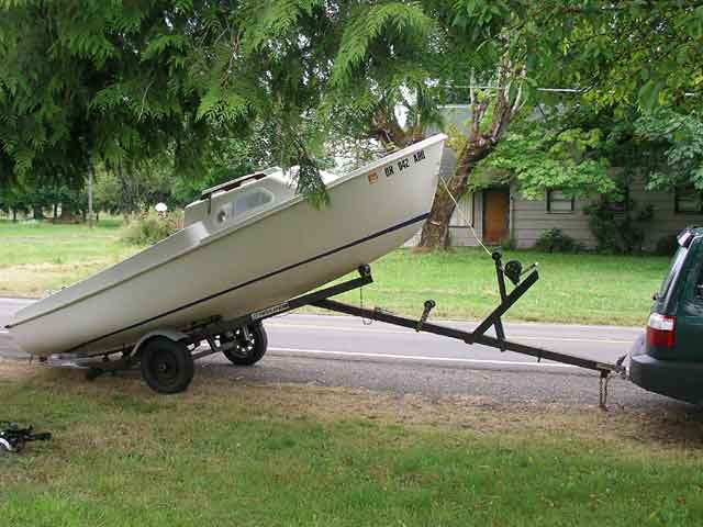 I needed to get at the point where the cable connects to the 220lbs keel. To do this, I needed to slide the boat off the trailer just far enough to drop the keel, do the work, then pull it back on the trailer.