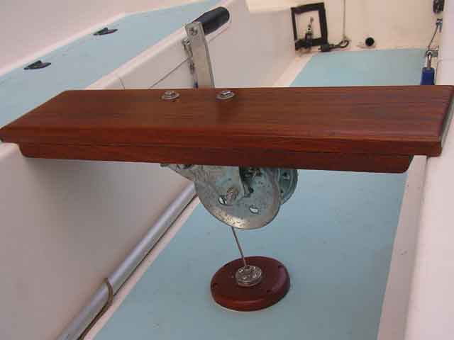 This is my fortified flange setup from the top. I used Brazilian Redwood for the base for the flange. Very dense stuff and it more or less looks like teak when varnished.