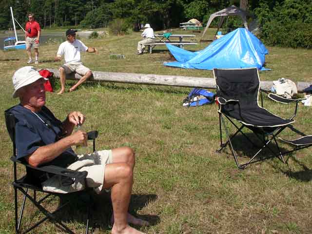Jim in the foreground and Doug, another Canuk, telling stories in the background.