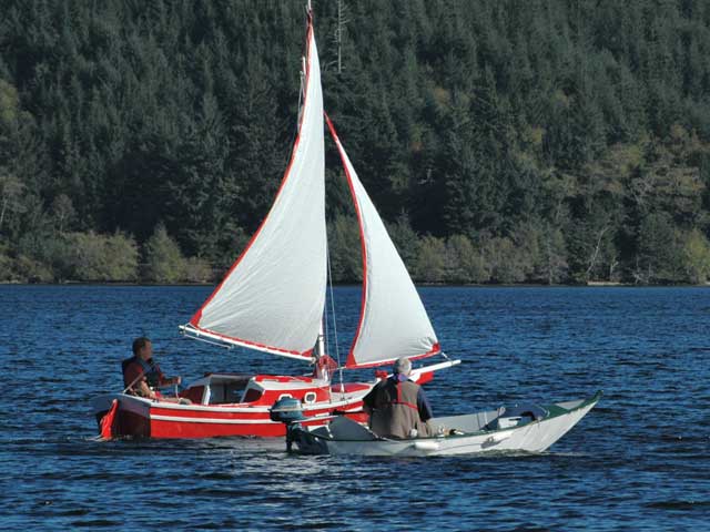 Terry Lesh came out to chat for a bit. He has a cool little 12ft boat called a Wave Dancer (Wind dancer? Moon dancer? I can't remember, something poetic, though.) It weighs around 100 lbs and is just as sturdy and steady as anything. He usually sails it, but today had an antique outboard providing the power. |