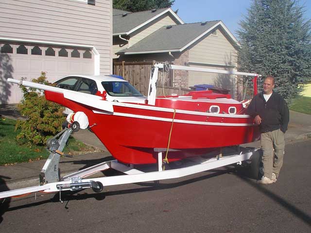 I bought the boat at the end of July and turned to on cleaning, painting, making sails, and helping Greg modify the trailer to better fit the boat. Finally, she was ready to put in the water. Greg called for a Messabout (gathering of boat nuts) at Tahkenitch Lake, and so I hit the road. |