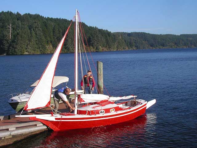 The wind was pretty good, nice wavelets cresting well but no real whitecaps, indicating a low 'Gentle Breeze' or 3 on the Beaufort Scale, probably about 12-15 miles per hour. I decided to raise the sails at the dock rather than out at sea.