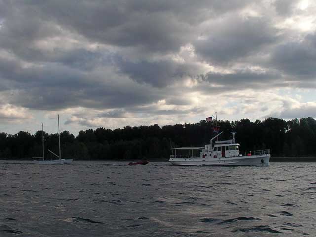 And this guy, with his big cabin cruiser towing an inflatable dinghy and an open ketch, just like a string of ducks.