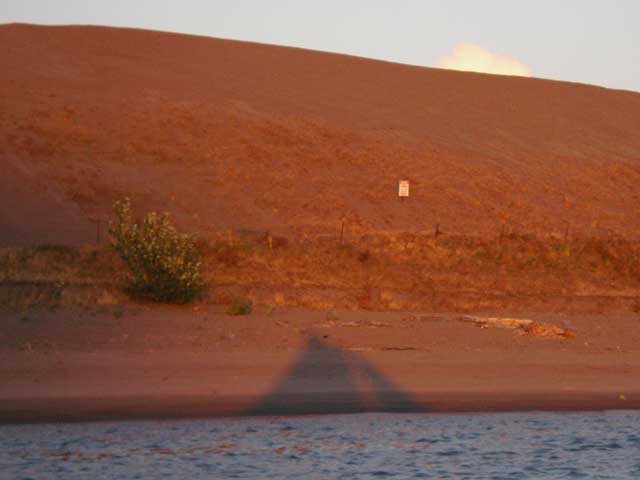 The sun sank lower until our sails cast a shadow on the bank.