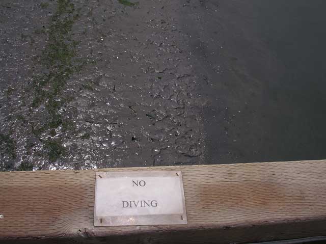 This sign was on the boardwalk that connected the store to the land. I liked it because we were about 20 feet up and over a mudflat - at high tide, it might be tempting to dive, but not at low tide.