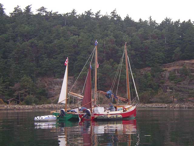We quietly motored past our fellows, saying goodbye as we made our way out of the bay. The Chebacco crews were up . . .