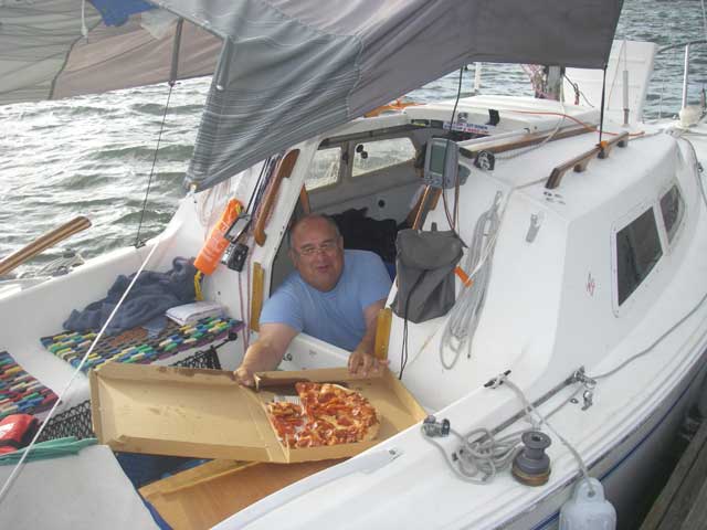 Nobody else was concerned, though. Tom ordered pizza and had it delivered to the docks at St Helens where he chugged over and picked it up.
