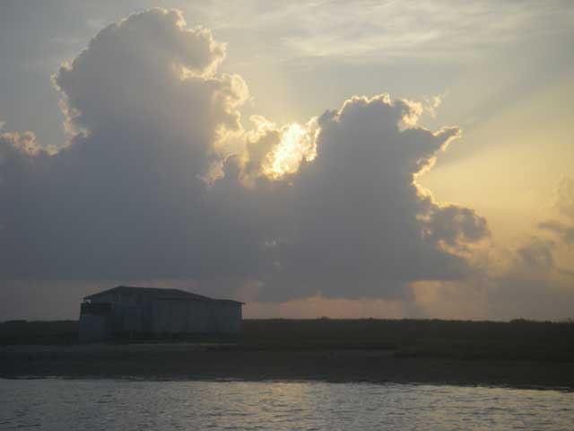 A crappy fishing cabin with a backdrop of stunning beauty.
