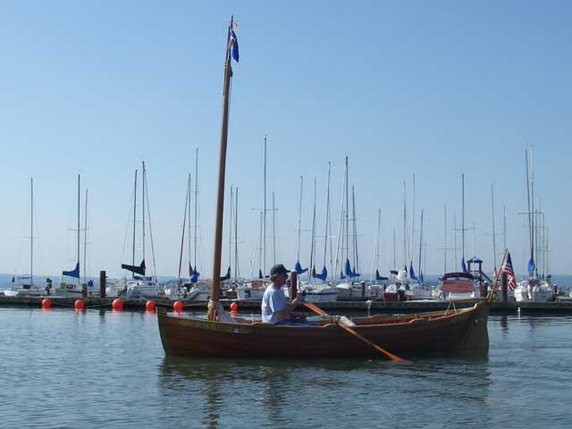 Brian Beachy was out in his lapstrake double ender. He was offering rides, but it was freaking hot so most people just looked and walked on.